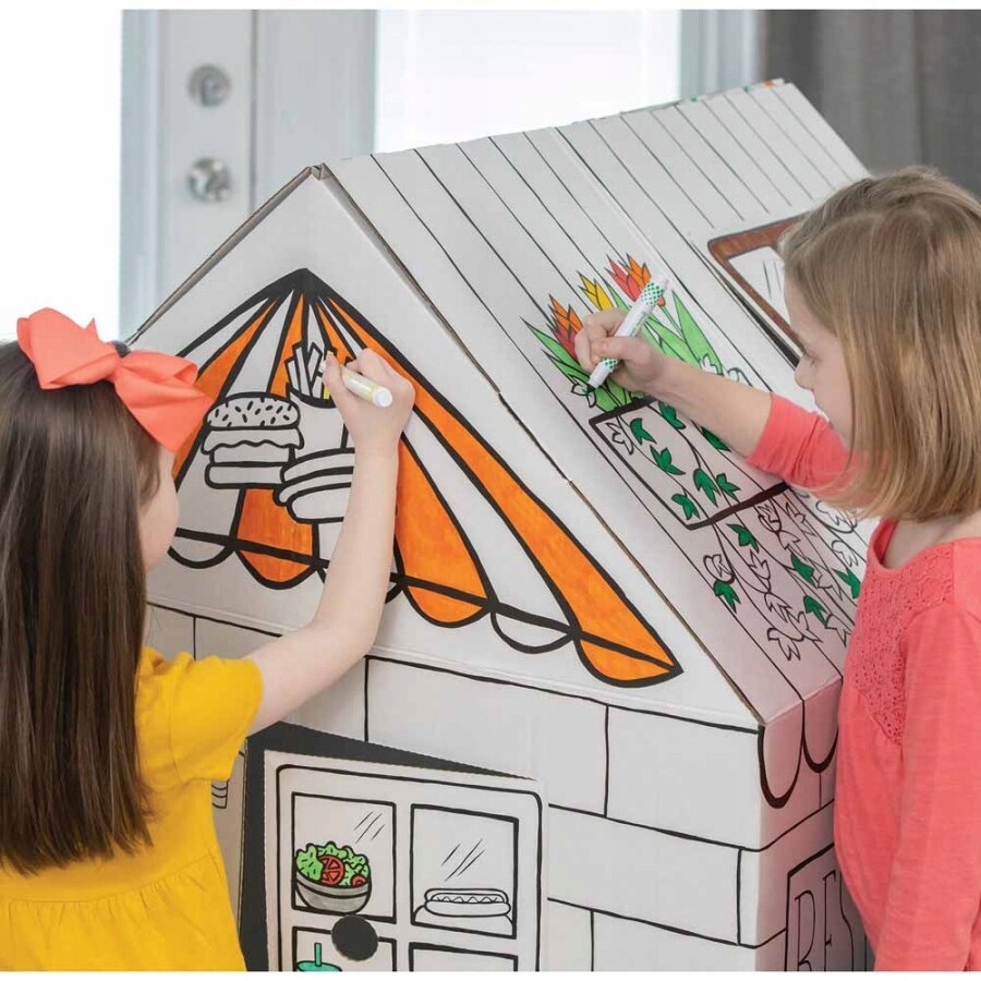 - Możliwość personalizacji - dziecko może dowolnie ozdabiać domek kredkami, farbami lub flamastrami, rozwijając swoją kreatywność.