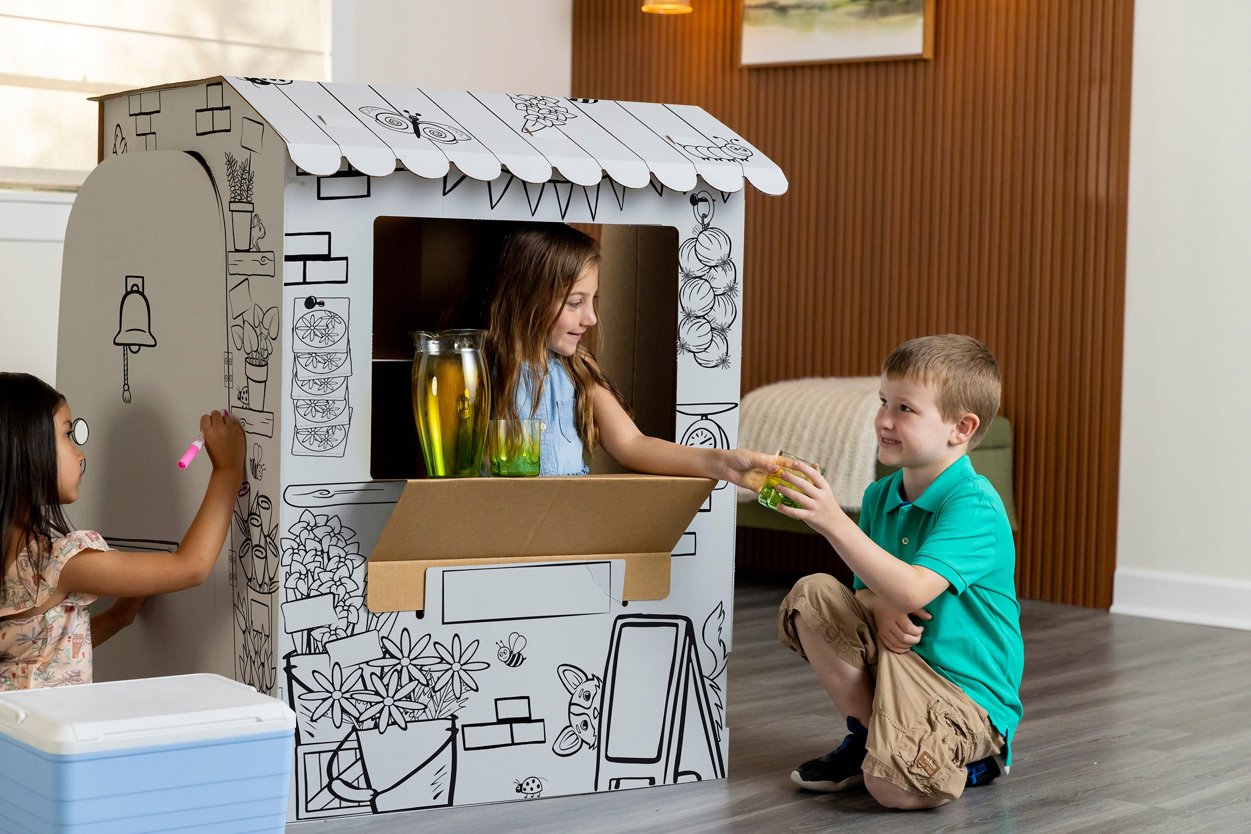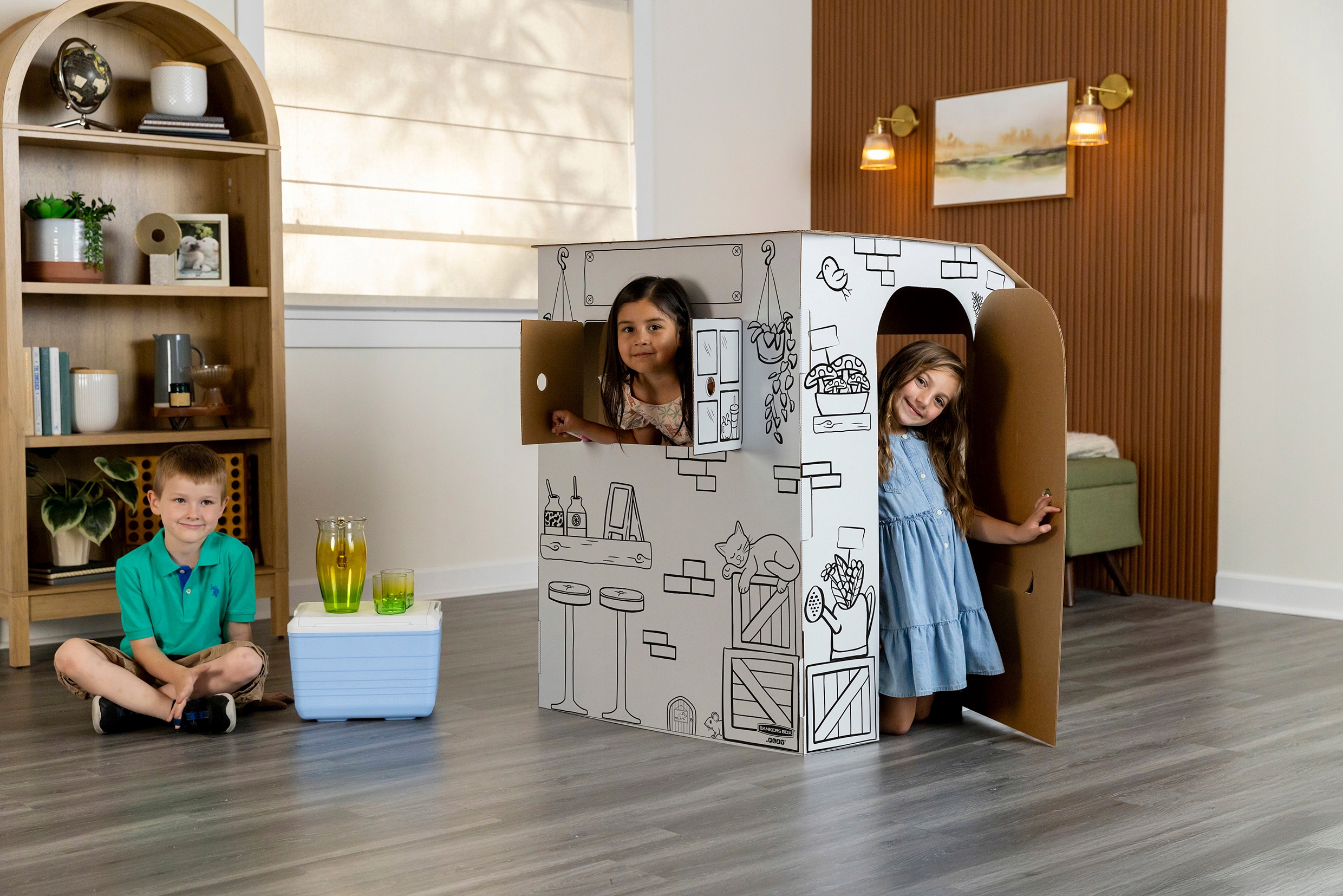 - ekologiczne wykonanie – domek powstał z certyfikowanej tektury FSC® (w 100% nadającej się do recyklingu)