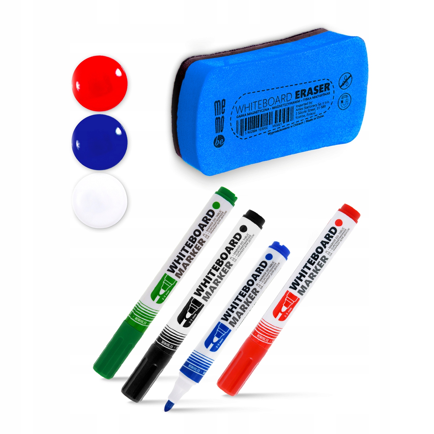 Markery do tablic i flipchartów 4 kolory + gąbka i magnesy MZ006 MEMOBE