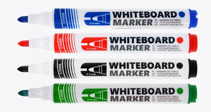 - trzy magnesy o średnicy 20 mm, które umożliwiają przypinanie notatek do tablicy lub flipchartu