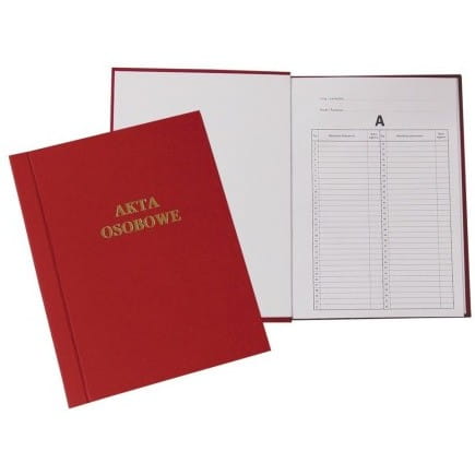 - Na okładce umieszczony jest złoty nadruk "Akta osobowe", wykonany metodą tłoczenia na gorąco.